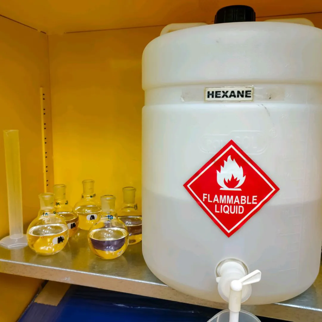 Liuotinuuton menetelmiin kuuluvat heksaanin, bentseenin, tolueenin, petrooli-eteerin, kloroformin ja isopropanolin käyttö. Vaikka liuotinuuttomenetelmällä saadaankin siemenestä enemmän öljyä ulos, vaikuttavat prosessissa käytetyt kemikaalit öljyn laatuun ja jättää jäämiä, jotka voivat olla haitallisia sekä ihmisten terveydelle että ympäristölle.