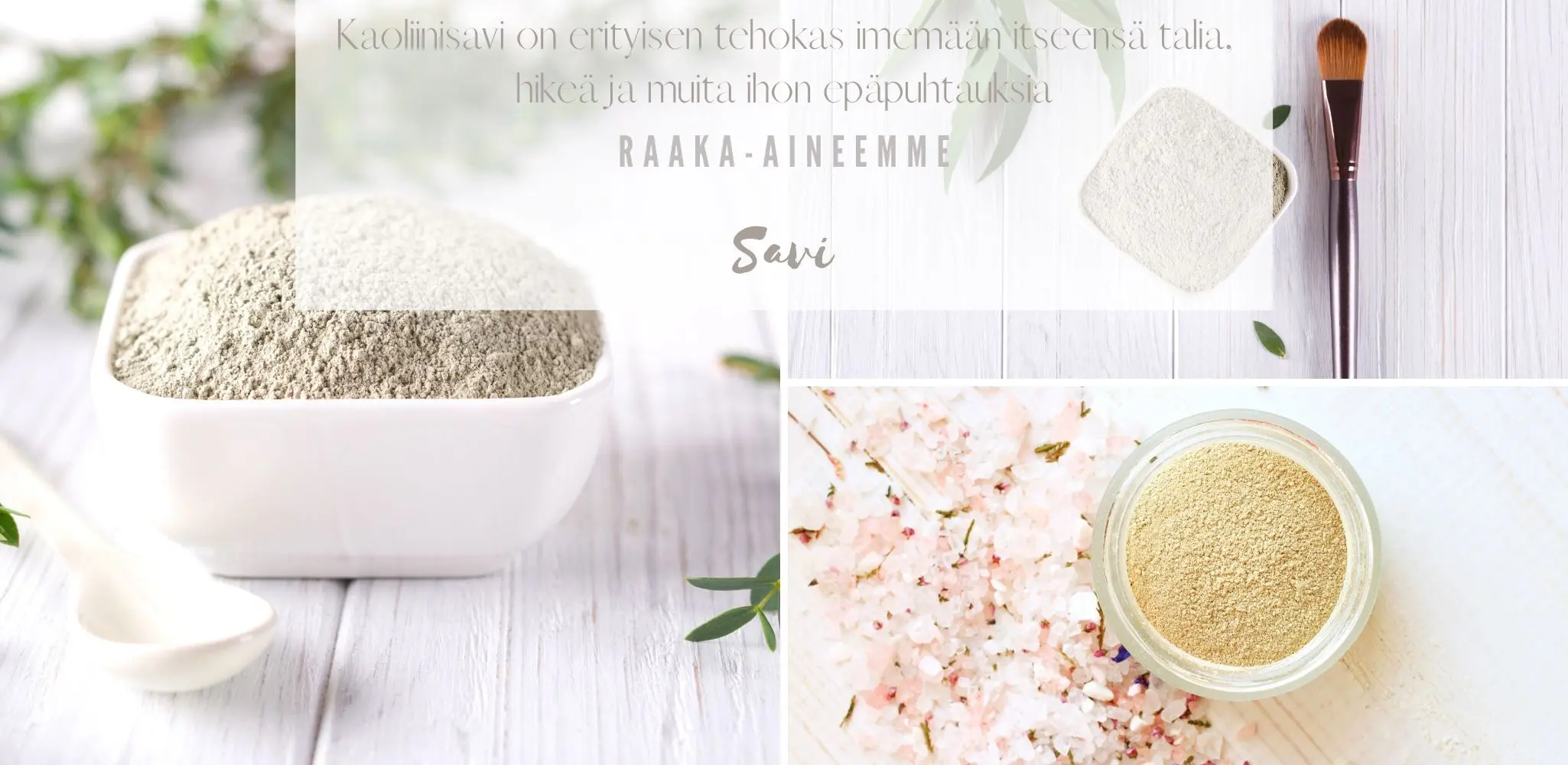 Kaoliinisavi (INCI: kaolin), eli valkoinen savi; on erityisen tehokas imemään itseensä talia, hikeä ja muita ihon epäpuhtauksia Epäpuhtaudet se sitoo itseensä ja saippuassa käytettynä nämä epäpuhtaudet huuhtoutuvat huuhteluveden mukana pois iholta.