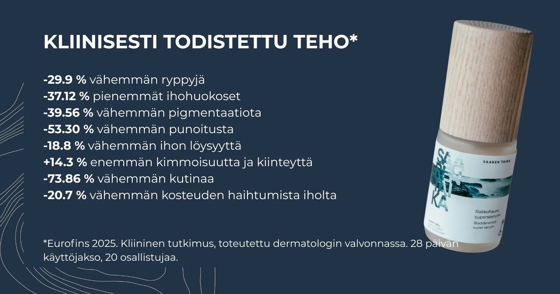 Kliininen tutkimus Saaren Taika Rakkohauru Superseerumin teho rypyt, ihohuokoset, ekseema, punoitus ja kutina, ihon kimmoisuus sekä ihon suojamuuri