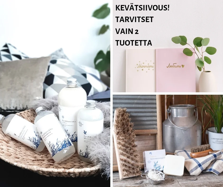 Kodin ekosiivoukseen tarvitaan tasan 2 tuotetta. Saaren Taika pyykkietikka ja siivoussaippua.