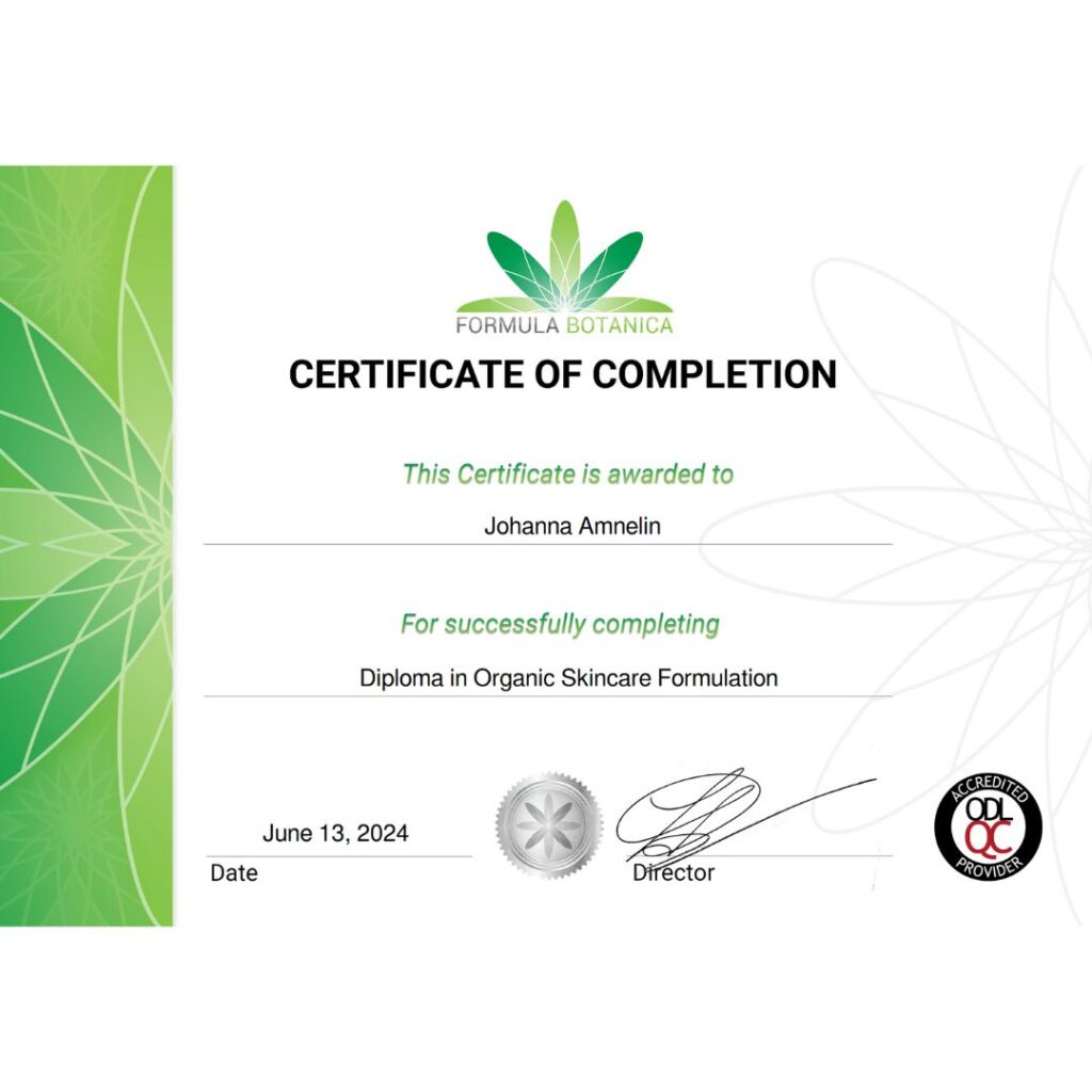 Myöhemmin suoritin englantilaisessa Formula Botanicassa etäkurssina Diploma in Organic Skincare Formulation -tutkinnon, tämän saman “tutkinnon”, jonka niin moni kosmetiikkabloggarikin on suorittanut.